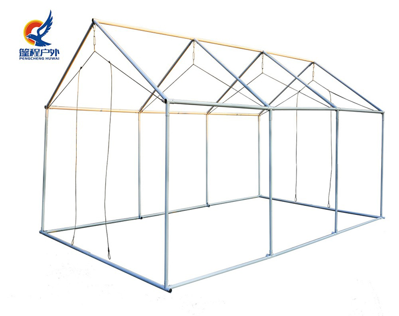 De betrouwbaarheid van de tent komt in de eerste plaats voort uit het streven naar uitmuntendheid in afmetingen en materialen. Pengcheng Outdoor maakt gebruik van hoogwaardige, hoogfrequent gelaste buizen, die een uiterst nauwkeurige buigbewerking ondergaan met CNC-buisbuigmachines om ervoor te zorgen dat elke beugel nauwkeurig overeenkomt met de ontworpen piekhoogte en dakrandhoogte. Dit is de fysieke voorwaarde voor een snelle tentmontage en algehele structurele stabiliteit. Alle stalen buizen ondergaan een verfspuitbehandeling om een ​​stevige corrosiebestendige beschermlaag te vormen. Het tentdoek wordt berekend en gesneden op basis van precieze afmetingen: we gebruiken waterdicht Oxford-doek met hoge dichtheid en dubbelzijdige PVC-coating, waarbij meerdere functies zijn geïntegreerd, zoals waterdichtheid, schimmelbestendigheid en UV-bestendigheid, waardoor de duurzaamheid van het product en eenvoudig onderhoud vanuit het materiaalperspectief worden gegarandeerd.