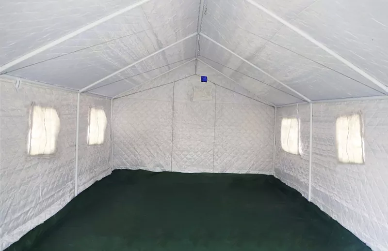 Opmerking: Bovenstaande zijn standaardparameters voor 36㎡ enkele noodhulptenten. Beugels, stoffen en vakmanschap kunnen worden aangepast aan de eisen van de klant.